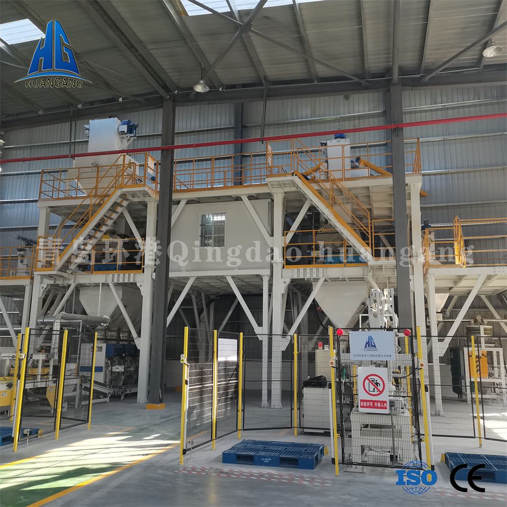 石膏抹灰砂漿生產成套設備是專為生產石膏基建材(如抹灰石膏、石膏基自流平、保溫石膏砂漿等)設計的高效自動化設備。其核心特點是針對石膏特性優化,確保生產過程中原料活性穩定、混合均勻度高,同時滿足環保與節能要求。