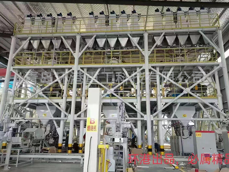 這是一套年產(chǎn)50萬噸的全自動環(huán)保膩子粉成套設(shè)備。通過調(diào)配原料的比例不同可生產(chǎn)內(nèi)墻膩子、外墻膩子、普通膩子、鏡面膩子、石膏膩子等多種類膩子粉產(chǎn)品。每小時根據(jù)所選型號不同,可生產(chǎn)10~50噸產(chǎn)品,生產(chǎn)線主樓采用塔式結(jié)構(gòu),粉料倉安裝在主樓頂部,外加劑系統(tǒng)采用獨立平臺計量泵送。骨料自上而下經(jīng)過計量層、混合機(jī)層、成品倉、包裝機(jī)、碼垛線。根據(jù)膩子粉的配方要求,可通過電腦計量精確配料后,經(jīng)過混合主機(jī)攪拌,即時生產(chǎn)出需要的膩子粉產(chǎn)品。全過程采用智能自動化操作模式,減少人力投入。